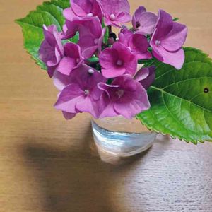 雨が止んで庭に出てみると、蜜蜂🐝が後ろ足に花粉をつけて飛び回っていました。なんか嬉しいです✨ ついでにアジサイをカット✂️しました。