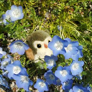 風強~い😲 ネモフィラが一輪咲きました🌼優しい青に癒されます😌