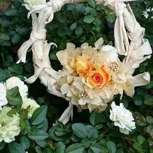 夏に大量にもらったトウモロコシ🌽 皮でリースを作ったら4ヶ月目ですっかり白くなりまして、🏠の東の親分と📷を撮りました。