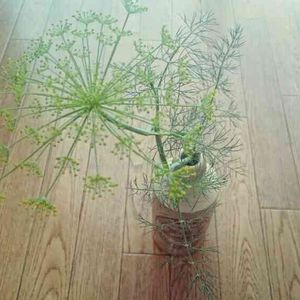 散々収穫した後のディルの花🌼です。これでも黄色です💦😅