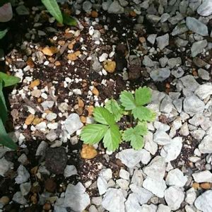 保護色だから見えにくいのですが、ワイルドストロベリー🍓の葉っぱ🌿に赤ちゃんバッタがいるんです😃 何処から来たのかしら?