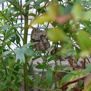 台風が過ぎ去った後、ワイルドブルーベリーの枝に建設されていた蜂🐝さんの🏠の様子です。 どこかへお引っ越しされたもよう🚚