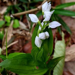 ギンラン(銀蘭) 本日、ギンラン様に出会いました。嬉しい🎵😍🎵 控えめに開く清楚な白い花から、 「おとなしい貴婦人」の花言葉だそうです。(北本自然観察公園)
