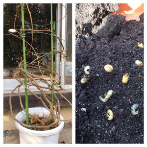 パッションフルーツが枯れました。 原因は、こいつか? ハナムグリか、カナブンの幼虫?