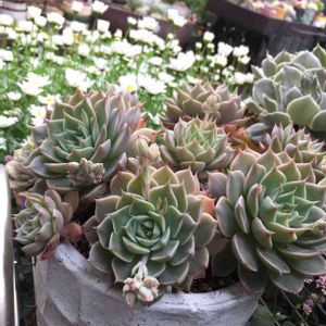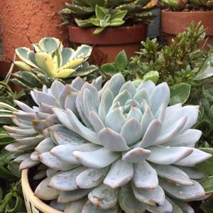 七福神の子株も高校生位かな?笑 素焼き鉢の中ぎゅうぎゅう😭💓 これはキツかろうから… 今度植え替えよう… 思うだけで終わる❓ 連ポス失礼しましたっ😅🍀