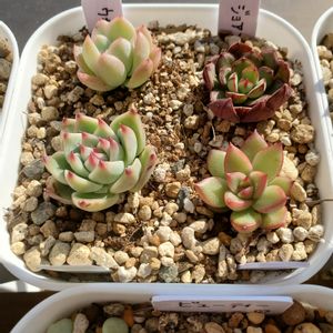 カルテ№151 エケベリア属 ウォーターリリー🌱 2017年12月にお迎えして5年目の子🎶 「ウォーターリリー」という名札でお迎えしたんですけど、アガボ系の交配種に使われている名前なんで🆖ネームですな。学名はスリョン(暫定)で、和名は睡蓮(スイレン)です☝️今年こそ、まとめのタグを変更しようと思ってます。 実はこの子、夏場の方が色が綺麗なんですけど、昨年の早過ぎる梅雨入りに体調を崩してズタボロになってしまって投稿出来なかったという次第😭すぐに緊急オペを施して見事に復活を果たしたんで投稿します😆🎶無事に冬越しさせて、夏にもう一度キレイな姿を投稿したいです💕 ズタボロからの復活の様子はみどりのまとめに載せてます🤭 さて、多肉ラボ©お題⑫「今年の抱負」 私の昨年の抱負とその結果は・・・ ⭕①遮光しない夏越しを成功させるための仕分けの確立 新居で初めての夏越しに遮光無しで挑みました。一部の子は梅雨明け後に東側露天に移したし、南側軒下の子は深めの軒下に助けられてほぼ成功👍 ⭕②防寒しない冬越しを成功させるための仕分けの確立 この抱負を立てた直後に大寒波に見舞われたんですが、果敢に「無対策で大寒波に挑戦」。当然のようにかなりのダメージでしたけど、仕分けの線引きが確立できたんで、今冬は楽勝(と現時点では思っている)👍 〇③上手く育ってない子たちの育て方を模索する 上手く育ってない原因を幾つかに絞り込むことはできたんですけど、まだ克服できてません💦今年に持ち越しです😅 タニラー6年生になる今年の抱負は・・・ ①昨年からの持ち越しで上手く(思うように)育っていない「アナカン」と「アドロ」を克服する ②エケの保険株を鉢まとめして、スペースを確保する ③夏に備えて、しっかりした西日対策を準備する 個々の育て方や置き場所と鉢の大きさと数がほぼ確定した(これ以上増やせない)んで、多肉にとっても良い方法でスペースの確保をしていきたいと思ってます🤭 無い知恵を振り絞ることになりそうですけど、来年振り返った時にまた⭕️印が付くように楽しい一年にしたいと思います🎶 「たっちんのウォーターリリー」タグをタップでこの子の生長記録のみどりのまとめが簡単に見れます😊🎵 。* ❤︎… 今日のひと言 …❤︎*。 うちの辺りは明日の深夜から☃︎の予報ですが、☃︎だからといって必ずしも「気温が超低い」わけじゃないんですな。慌てずに対処を👍