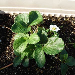 いちごの花が咲きました!! ちゃんとできるかなぁ〜🍓💕