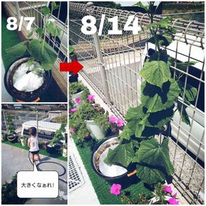 娘と一緒に作った夏野菜 嫌いな野菜も育てれば 頑張って食べれる😍✨
