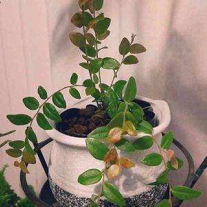 真珠コケモモ 夏バテ気味の真珠コケモモちゃん💦 良い時は濃い緑色の葉ですが、今は黄緑かつ葉がざらざらとしてる所が多い😭 水が足りない? 葉が結構落ちてボリュームが減ってしまった😭