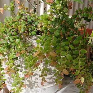 こんにちは🤗 いいね、いつもありがとうございます💕 9月になりましたね✨ 朝の空気がひんやりしてガラッと変わりました…体調崩さないようにお気をつけてお過ごしくださいね✨ 🍀今日の小庭から🍀 真珠コケモモ 去年お迎えして1/24にアップしていますが 小さいお花と実なので実がなっていたのも全く気がつきませんでした💦 春、暖かくなってからお外へ。 直射日光が苦手で半日影に置いていました。時々様子みながらお水をあげていただけ😅 この植物は本来は、地面に生える植物ではなく、着生植物(木にくっついて、そこから育つ植物)なんだそうです。 空中の水分や養分を自分で取る植物になるそうですよ。シダ類、コケ類、藻類、ランなどがお仲間みたい💕 コケモモってお名前なのにお仲間じゃなかったのね😆 面白いな🤣