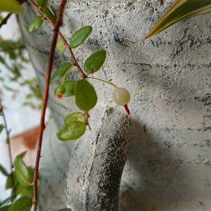 久々のマクロ撮影🤗📸 この子は真珠コケモモ🍒 真珠コケモモは、南米大陸北部の標高約200〜1800mの丘陵地帯や山岳地帯の湿った熱帯林にに分布している着生植物。 真珠のような小粒のキュートな実が付き、 実の色は白から徐々に薄紫色に変化していくそうです😊 お迎え直後は寝室の窓辺に →初夏に日差しが強くなったので脱衣所の窓辺へ →元気がない様に感じて、少しでも自生環境に近付ければと、キッチンの窓際(屋外)へ →日差しが弱まって来たので裏庭の明るい木陰へ と移動を重ね、ようやくお気に入りの環境を提供してあげられたのか、初めて蕾をつけてくれました🤗🌸 ビニールポット→ハンギング→ココヤシポットと鉢も変え、枯れ続けていた葉もようやく元気を取り戻して来たみたい😃🪴 なかなか気難しい子の様ですが、これからも上手く付き合って行けたら良いなぁ😊💓