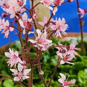 本日2枚目です♪ 垂れるように咲きました💕 初開花です♪ 可愛い〜₍ᐢ‥ᐢ₎ ♡ 正式な名前は不明だけれど、 サキシフラガ パニクラータ・ブレビフォリアなのかなぁ〜? 小花がすっごく可愛いのでサキシフラガ集めてみたくなりました〜♡ 追記:今日ホームセンターで同じものを見つけました。 姫ほしつづり という名前の山野草でサキシフラガ パニクラータでした😃