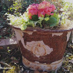 朝日が眩しすぎだわ。色味が素敵なバラ咲きキャンディマジックなのに…。 お気に入りだったブリキポットは…パラパラ剥がれ落ちるほどネンキが入ってきた💀