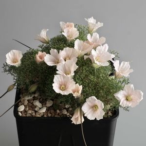 モンソニア・ペニクリナム 出かけて帰ってきたら開いてました。🌼 モサモサの葉っぱに可愛い花。 毎年咲かせたいな〜。
