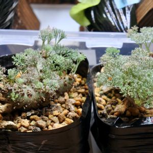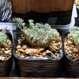 ペニクリナムは、腰水の3つがアフロっていて、腰水をやめた1つは締まった成長でしたが、鉢替えした時に葉が抜けてしまいました。結構デリケートですね。