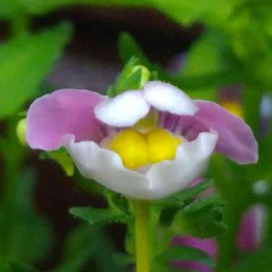 開花直前のネメシア。 何か言ってます。 ↓ 今日咲く予定だったけど 雨だから明日だな🤔 シフト変更しないと🤔 今日は残業かなぁ😖