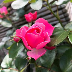 No.15 パレード ショッキングピンクが眩しいパレードは 花も葉っぱもとっても丈夫なバラ温玉 ただし棘も多くて丈夫なので注意