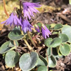 イワカガミダマシ🎵 すみれ色 うつむき加減が キュン💓 ポット苗買ってきたためか もう咲いた😊 地植えしてみたけど 上手く夏越えられるかな〰️ 頑張れ✊