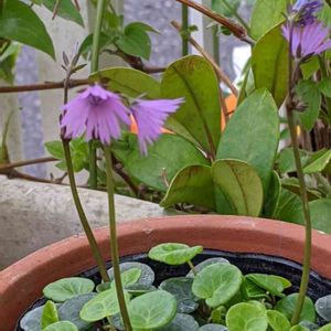 イワカガミダマシです この前、長野県南部の道の駅の山野草コーナーで見つけたものです 花が赤いイワカガミと違って紫色で花が可愛いかったので即買いしました 高温多湿が苦手みたいなので山梨で育つか心配です😓