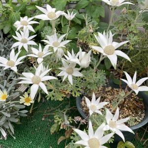 何年目かな?フランネルフラワーさん 去年夏、一休みした後、秋から ポツンポツン細々と咲き続け、今、咲き揃ってます ⑤のピンク💗のスカビオサも同じです ④のローダンセマムはマーガレットに比べると、華奢なイメージですねー💕💕