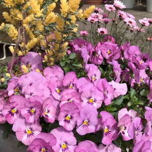切り戻したビオラがモリモリに咲いてきました🌸🐝🌿 可愛く渋滞中💕✨ 📸『は〜い!間から顔出してくださいね〜』 今日は暖かくなるといいですねぇ☀️ 節電ですものね💡٩( ᐛ )و ✩︎**・