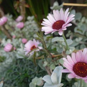 プチマカロンと言う名前に💘 銀葉にピンク色の花が可愛らしい (*´ω`*)💕 ローダンセマムは、色々あって、毎年ついついお迎えしてしまう🌸🌿 問題はうまく夏越しできない事… 一年草と割り切る方が、良いのだろうか🤔