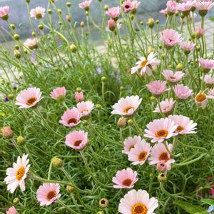 「ローダンセマム プチマカロン」です💕 去年の春お迎えして、夏越し・冬越し?!をして、今年もかわいいお花を見ることができました~🎶 去年よりもなんだかひょろひょろしていますが、無事に咲いてくれてとっても嬉しいです🥰 春はお花がいっぱい咲いて、毎日が本当にワクワクしますね✨
