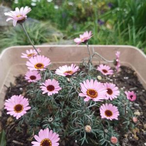 🍀おはようございます🍀 夏越ししてくれた ローダンセマム プチマカロン💗 昨年は地植えにしていたローダンセマムですが、 真夏に★になりガッカリ!! そして3月にチャレンジで迎えた プチマカロンは四角のプランターに 植えて様子を見ていました😊 成功したかな(´∩。• ᵕ •。∩`) 新しい🌿も出て大株になっています🎶🎶 嬉しいです(♡ω♡ ) ~♪