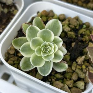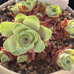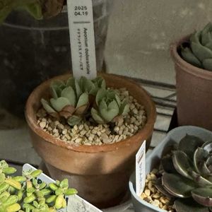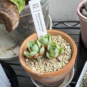 2025/08/02、グリーノビア・ドドランタリス、休眠してない。 元はグリーノビア属だったのが、アエオニウム属に吸収されたらしいです。 園芸店の処分品コーナーに、一株100円で山積みだったので 3株購入しました。 根が張って、葉も生き生きとしていたので 休眠はしていないようです。 この株は寄せ植えして水やりします。 多肉植物は10年ぶりですが、頑張って育ててみます。
