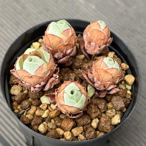 だいぶ寒くなりましたが、お日さまを浴びれるチャンスが続き、多肉さんたちは嬉しそう✨ アドニスさんも完全にお目覚め😊 可愛い葉を開いてます💖 pic2 心配していたドドランさんも 一つは枯れてしまいましたが、小さなベビーちゃんを含めた3つは起きました😌 pic3 夏は殆ど坊主頭だった七宝樹さんもワサワサの葉がピンクとクリームに染まって綺麗😍 pic4 ポキッと折って挿した子にも小さな葉が出てきました♪ pic5 14日に開花したコノフィツムさんは20日に2つめのお花が咲き始めました✨ 一日の開花時間は短いけれど、長い日数を楽しませてくれてます🥰 最長で何日咲くのかな?