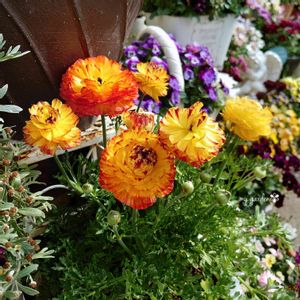 おはようございます☀️ 2週間程前に定植した春の寄せ植え🌸 ラナンキュラス、オステオスペルマム、プリムラプリカント、コロニラ、ワイヤープランツを寄せています🧡🤍💚 今日も素敵な一日をお過ごしください😊