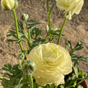ラナンキュラス 綾リッチ 隣に並んでいるアネモネと行動を共にしたいらしく、同じタイミングで開花しそう(՞ . .՞)੭" できればタイミングをズラしていただきたい ( ´˘` ) (オネガイ>/\<)