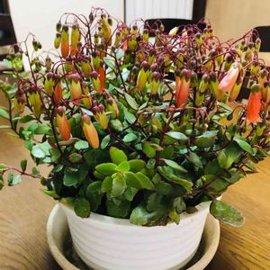 カランコエ テッサ オレンジ色のシャンデリアのようなお花です。 蕾もたくさんついていて楽しみ〜❣️