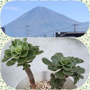 地植えで巨大化してる多肉さん とっても面白い😊 & 昨日の冷たい雨で雪を被った今朝の富士山❣️