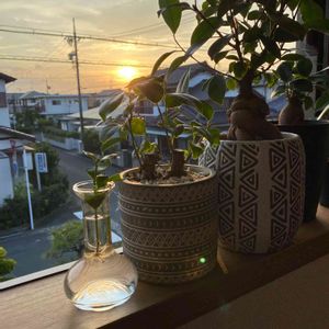 こんばんは🌇 今週のお仕事終わった〜 トラブル続きで疲れたました😔 帰宅🚙 いつもの窓辺で… 植物(チマチマ徒長中です😅)と夕陽に 癒されます😌