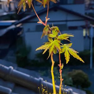 こんばんは🌇 今日はちょっとだけ☔️が降りました。 黄砂の影響だと思うけど🚙が…🥲 picは秋の紅葉じゃなくて新緑から 赤い品種のモミジ(ノムラモミジ) です。これも黄緑の新緑の庭の中で 存在感があり、いい感じです(^^)
