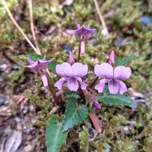 シハイスミレ スミレ科スミレ属 多年草 花期3〜5月 和名シハイスミレは「紫背菫」の意で、葉裏が紫色を帯びることによる。 本州(東北地方南部以西)、四国、九州に分布する。 雑木林や森林の林縁などに生える。 初めて見たスミレなので、自信がありません。間違っていたらご指摘願います。