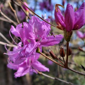 キヨスミミツバツツジツツジ ツツジ科ツツジ属 落葉低木 別名はイワツツジ 千葉県の清澄山で発見されたので命名された。 関東地方南部〜近畿地方南部の太平洋側に分布。 花柄を触っても粘らない、各花芽に1輪の花が咲く点がミツバツツジと異なる。