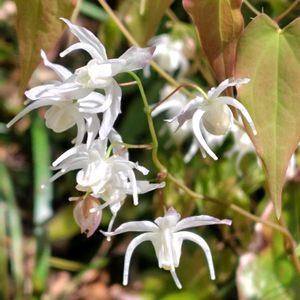 メギ科イカリソウ属 常緑多年草 日本固有種 本州北陸地方から山陰地方にかけて日本海側の温帯から暖帯に分布。 多雪地の山野の林下に生育する。 和名は「常磐碇草」の意で、根出葉が冬に枯れないで翌年まで残る「常緑」であることによる。 花期4〜5月 やや下垂して、径3〜4cmの白色または紅紫色の花を付ける。 北陸地方では白花が多く、福井県若狭湾以西では、このような紅紫色のものが目立つ。