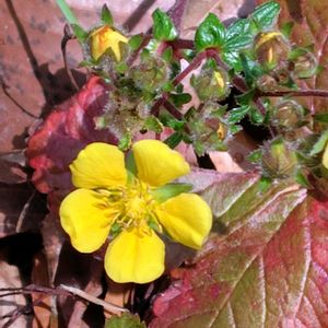 キジムシロ バラ科キジムシロ属 多年草 日本全国の山野の草地に生える。 花は直径15〜20mmで、萼片は鋭頭で長さ4〜8mm、副萼片は同大かやや小さい。 全体に毛がある。 キジムシロの名前は、花後に葉が大きく伸び、キジが座って休むむしろのように広がる様子が由来となっている。 花言葉は「明るく輝いて」 よく似たベビイチゴとの違いは、ベビイチゴは花弁と花弁の隙間が開いて萼が見え、真ん中の雄しべが丸くオレンジ色になるのが特徴である。