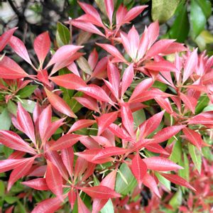 アセビ ツツジ科アセビ属 常緑低木 花期3〜4月 新芽が赤くでてきている。 お花もまだ可愛く咲いている。