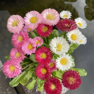 ☘️チロリアンデージー☘️.....春のかわいらしさが弾けているね💕🌸🕊️🌸🫧🫧昨日は主人とお出かけして🚙〜川あんこうのムニエルにサーロインのグリル。綺麗なこんな栄養、久々に全て取り込めて嬉しかった〜🥗🍽️☕️💕✨ついでにしばしお花屋にも🤩香りと彩りに元気が出た❣️帰宅後はやっぱ少し疲れたけどね😓💦