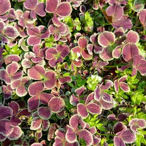 おはようございます。 🏷️今日のお花! 庭植えのクロバーさんです。 グランドカバーにして、増殖中です。🥰 🤍💚色のチューリップさん、ピンク色のチロリアンデージーさんも、咲き始めました。😊 スマホの電池、50%だと繋がらないですね。( ´•ᴗ•ก)🐱🐾