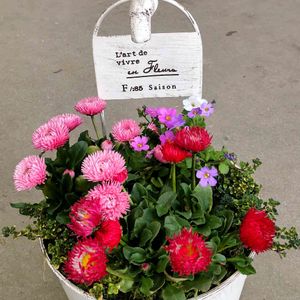 おはようございます😊 数日前に作った寄せ植えです。 💛ユリオプスデージー 🩷チロリアンデージー ❀ガーデンシクラメン 🍀🩷ハツユキカズラ 皆さんいつもありがとうございます🤗