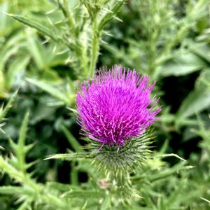 『アザミ』 🏷️今日のお花 マリアアザミ(ミルクシスル) オウシュウヒレアザミ 「ノアザミ」 マリアアザミ(Milk Thistle / 聖母マリアのアザミ) 🔸特徴 原産:南ヨーロッパ〜中東 葉に白い模様があり、「マリア様の母乳がこぼれた跡」との伝承から「マリアアザミ」と呼ばれています。 💐花言葉 「保護」「慈悲」「母の愛」 🧬名前の由来 キリスト教伝承:聖母マリアが赤ん坊イエスに母乳を与えていたとき、葉にこぼれて模様ができたという伝説。 💊薬効(現代ハーブ医学) 主成分:シリマリン 肝臓の保護作用がとても有名。 肝機能障害、肝炎、脂肪肝、アルコール性肝障害などにサプリメントとして広く使われています。 抗酸化作用・抗炎症作用も。 オウシュウヒレアザミ(欧州鰭薊 / ミルクシスル)も↑とほぼ一緒。 ノアザミ(野薊) 🔸特徴 日本原産の在来種。 初夏〜秋にかけて、紫紅色の花を咲かせます。 茎や葉にトゲがありますが、比較的やさしい印象の野草です。 💐花言葉 「独立」「報復」「厳格」 (アザミ全般の花言葉に準じます) 🐈猫には刺激物(トゲ)となるため、普通は避ける傾向がありますが、草を食べたがる猫もいます。 ノアザミには特別な毒性は確認されていません。 ただし、大量摂取やトゲによる口腔内の損傷には注意してください。 むやみに与えないで下さい。 💊薬草としての効能 葉・根:民間薬的に、健胃・利尿・止血に用いられることもあります。 昔の民間療法:若葉を揉んで、切り傷や虫刺されの腫れにあてるなど。 ⚠️ アメリカオニアザミ(アメリカ薊 / Bull Thistle)ここにはいません 🔸特徴 北米原産で、外来種として日本でも分布。 トゲがとても鋭く、葉・茎・ガクすべてにトゲが密生。 放置すると大繁殖する厄介な侵略的植物(雑草扱い)です。 ⚠️危険性 触れると皮膚を傷つけるほどの鋭さ。 牧草地や農地で繁殖すると駆除が困難。 毒性はないものの、家畜や人間には迷惑な植物。 種子の飛散力が強く、根も深くて再生力も高いため、根絶が非常に難しいです。 「美しいものには棘がある」と言いますよね。 まさにアザミはその体現。 トゲがあるからこそ、動物に食べられず、自然の中で生き抜く知恵を持っています。 🩷フランスでは「アザミ=騎士の花」 スコットランドでは国花であり、「敵の侵入を防いだ」という伝説もあります。 ⇒ 美しさと防衛本能が共存する、誇り高き花として敬意をもたれています。 トゲがあっても嫌われない、むしろそこに魅力がある——。 アザミは、本当の強さと美しさを教えてくれる野草なのかもしれませんね🍃 今日も暑い🥵です。 毎回、毎回 いい疲れました😓が、 命を守る行動を お願いします。(⁎ ᎑ˬ᎑)⁾⁾❤️🩹