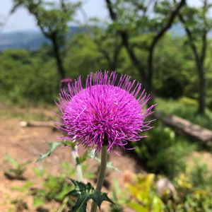 昨日の小石川植物園 2月頃から気になっていた 特大アザミ 花は、意外に小さかった💜 トゲトゲが凄い‼️ キク科 地中海沿岸、北アフリカ、アジア