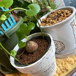 亀甲竜お迎えしてきました⭐️ 直径2センチの小さいイモw 植替え方法聞いてきたけど 根っ子殆ど無いし これ難しいな………
