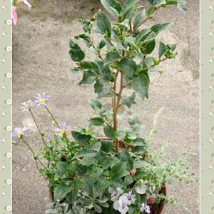 オレンジのニチニチソウが元気なくなってきたので夏の寄せ植えを解体。 先日買ったミニツバキと今日購入した植物たちを寄せ植えました。(・∀・) ミニツバキの他には、 ブルーデージー、 ラゴディア・ハスタータ(ホワイトソルトブッシュ)、 モクビャッコウ、 薄いブルー系のビオラ。 ブルーデージーとビオラはよく広がるのでかなりスペースを空けて植え付けました(・∀・) 空いてる場所は繁るまでバークチップで誤魔化し誤魔化し( ^ω^ )