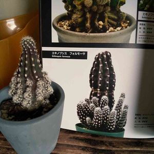 子吹きオベサのように、球体に走るトゲ部分から小さな子株を吹いていくこの子は、誰でしょう〜? 大きさは今で鉢植え6センチくらいです。 名前のわからないまま育てていますが、、、そろそろ知りたい!✨ 2020.06.22.判明! 和名 フォルモーサ (大豪丸仔吹型石化種 ) 学名 Echinopsis subdenudata cv. caespitosa フォルモーサはサボテン科 エキノプシス属。大豪丸の子株をたくさん出すタイプ。