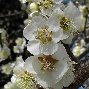 3/2 (水) 🌥 🌳🤍梅🤍🌳 ウメ、ハクバイ 学名❀✿Prunus mume Sieb.et Zucc ※バラ科 ※サクラ属 落葉低木 ♣️梅は非常に色が豊富。紅色、濃いピンクやそれ以外には桜のような薄いピンクもある。また、白っぽいピンクから真っ白のもの。この真っ白のものをハクバイと呼ぶことがある。♣️ 3/1付撮影📸📱🤍近くの神社にて💕